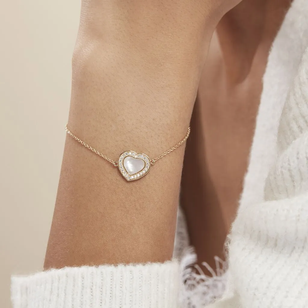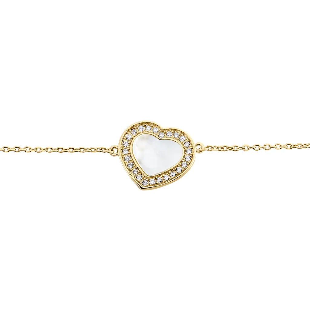 Bracelet Plaqué Or Jaune Cœur Nacre Blanche Entourage Oxydes De Zirconium Maille Forcat 18cm