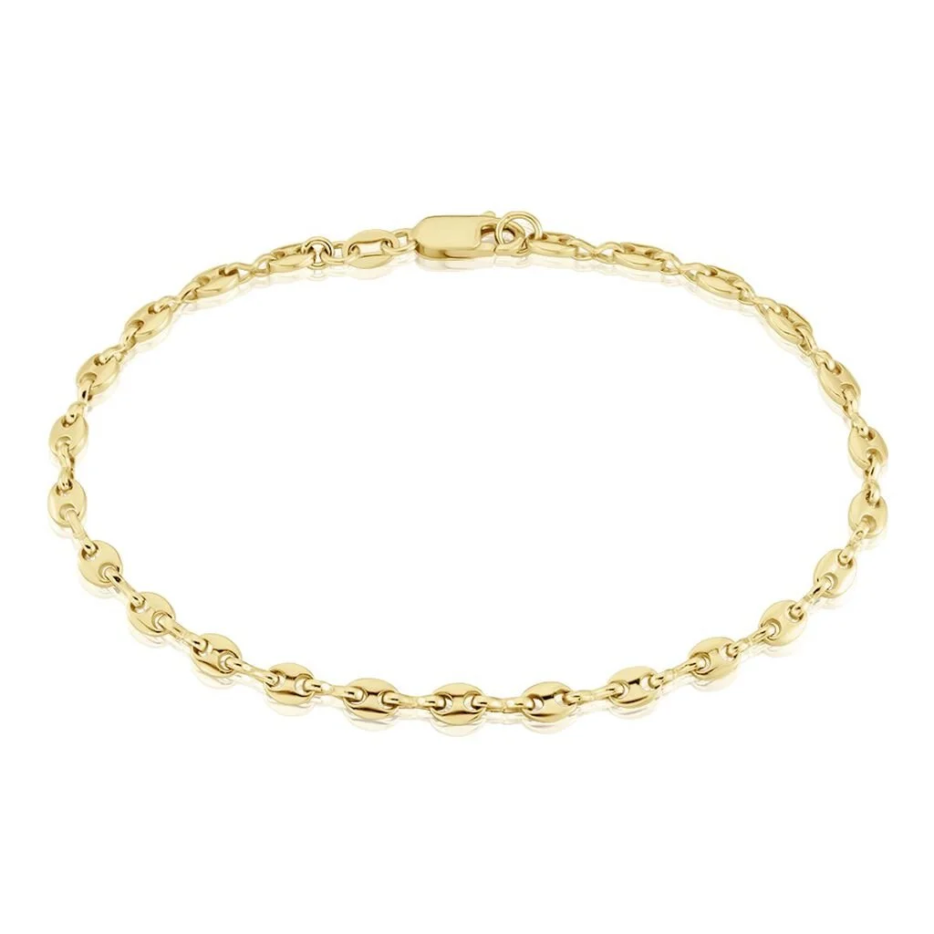 Bracelet Plaqué Or Jaune Maille Grains De Cafe Largeur 4mm 21cm