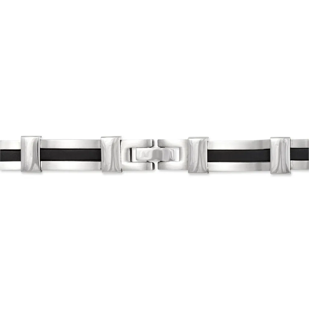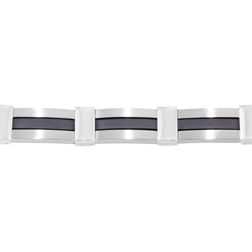 Bracelet Acier Blanc Resine Noire 21cm