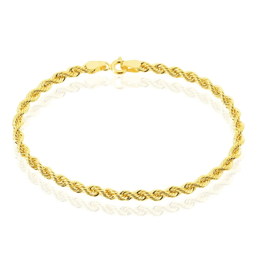Bracelet Or Jaune 375/1000 Maille Corde 3.5mm 19cm