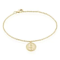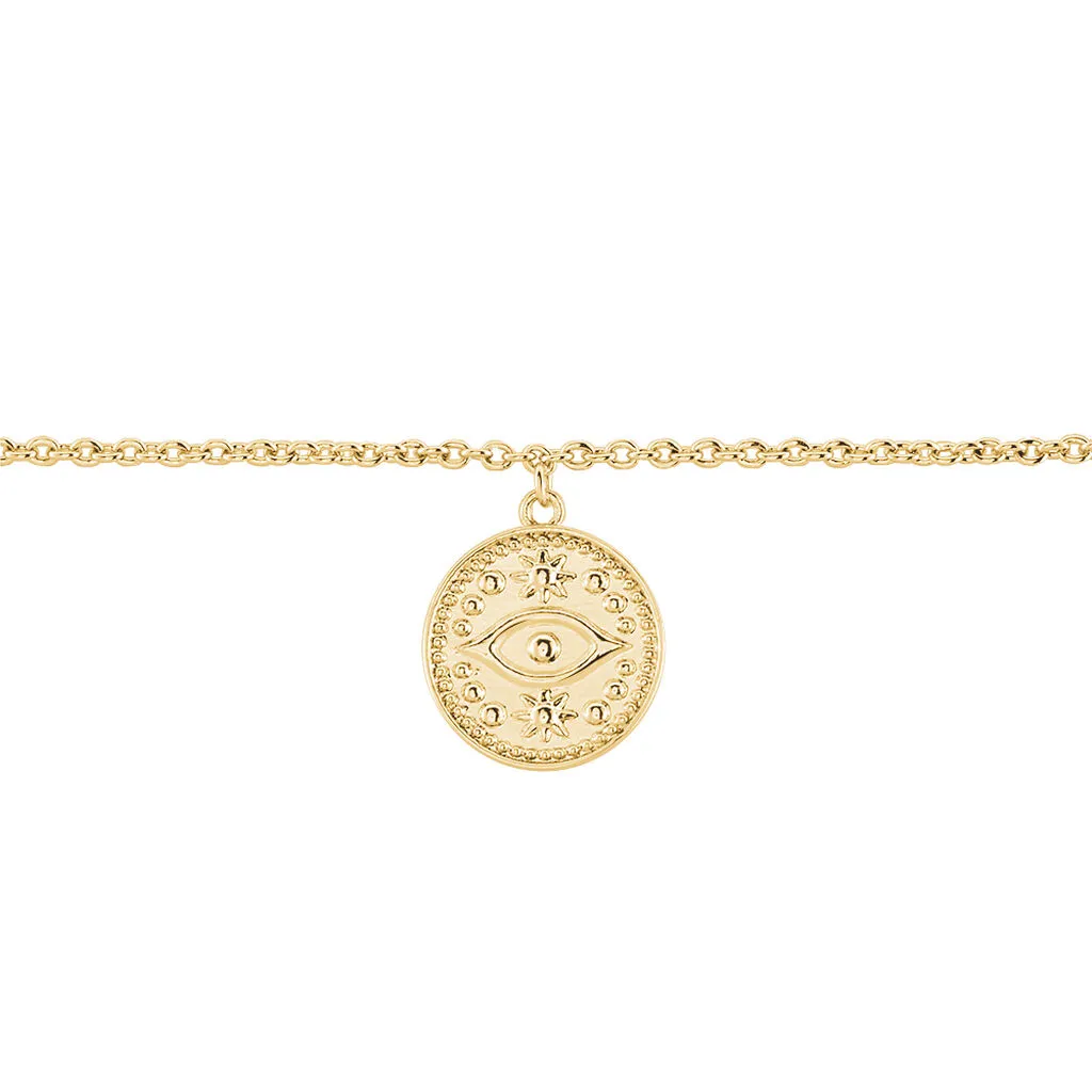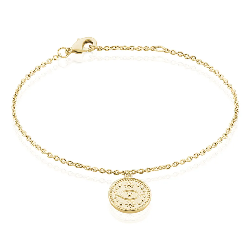Bracelet Plaque Or Pampille Forme Ronde Motif œil 18cm