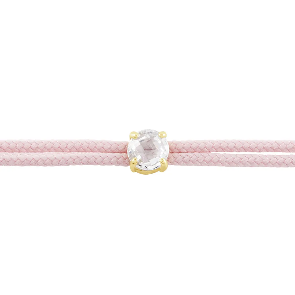 Bracelet Or Jaune 375/1000 Oxyde De Zirconium Cordon Ajustable Rose 14cm