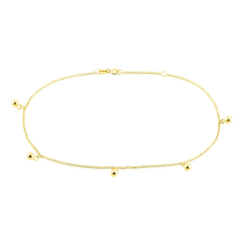 Chaine De Cheville Or Jaune 375/1000 Pampilles Boules Or 24cm