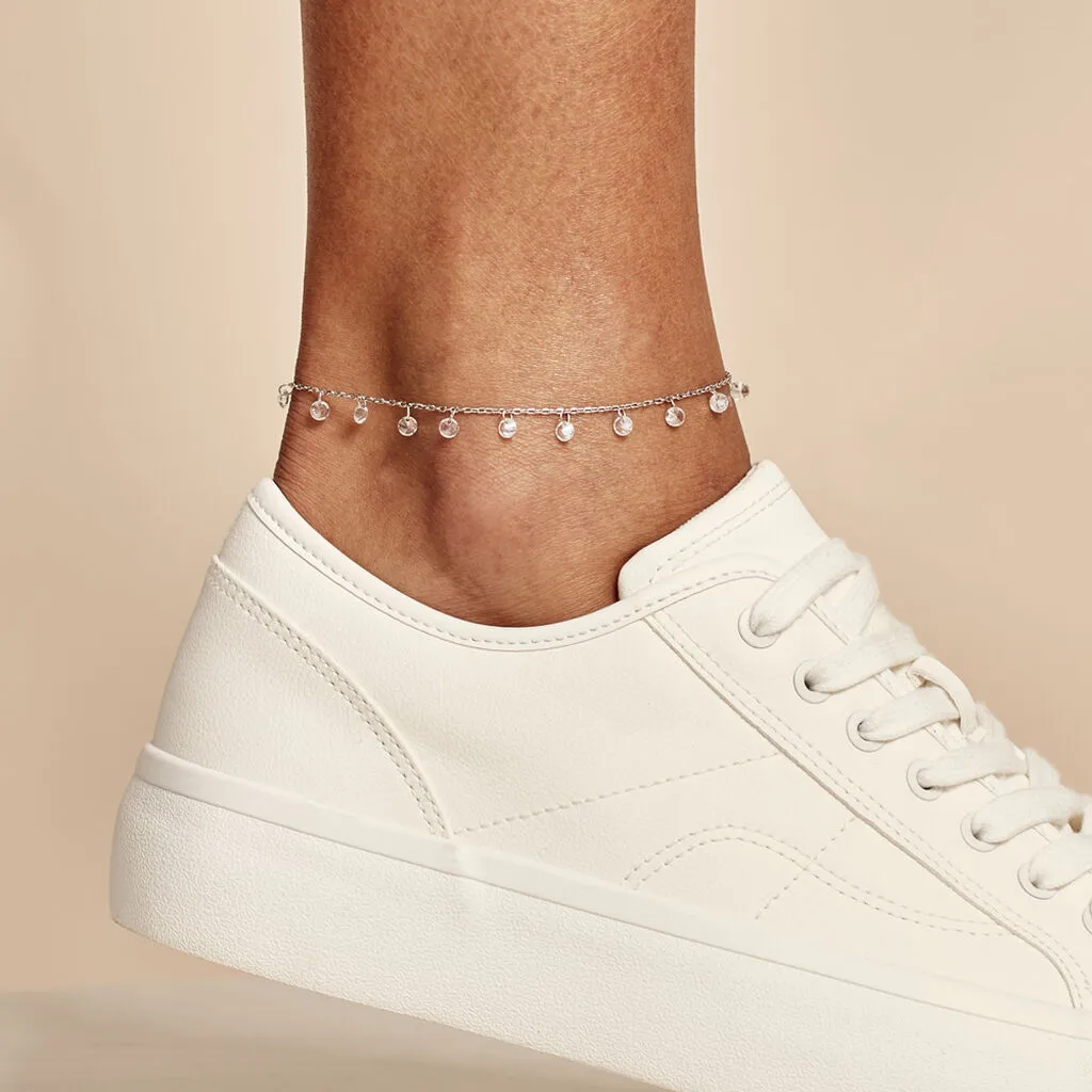 Chaîne De Cheville Carolaine Argent Blanc Oxyde De Zirconium