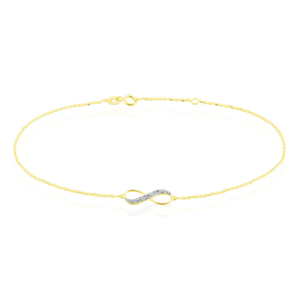 Chaine De Cheville Or Jaune 375/1000 Motif Infini Glitter Maille Forcat 24cm
