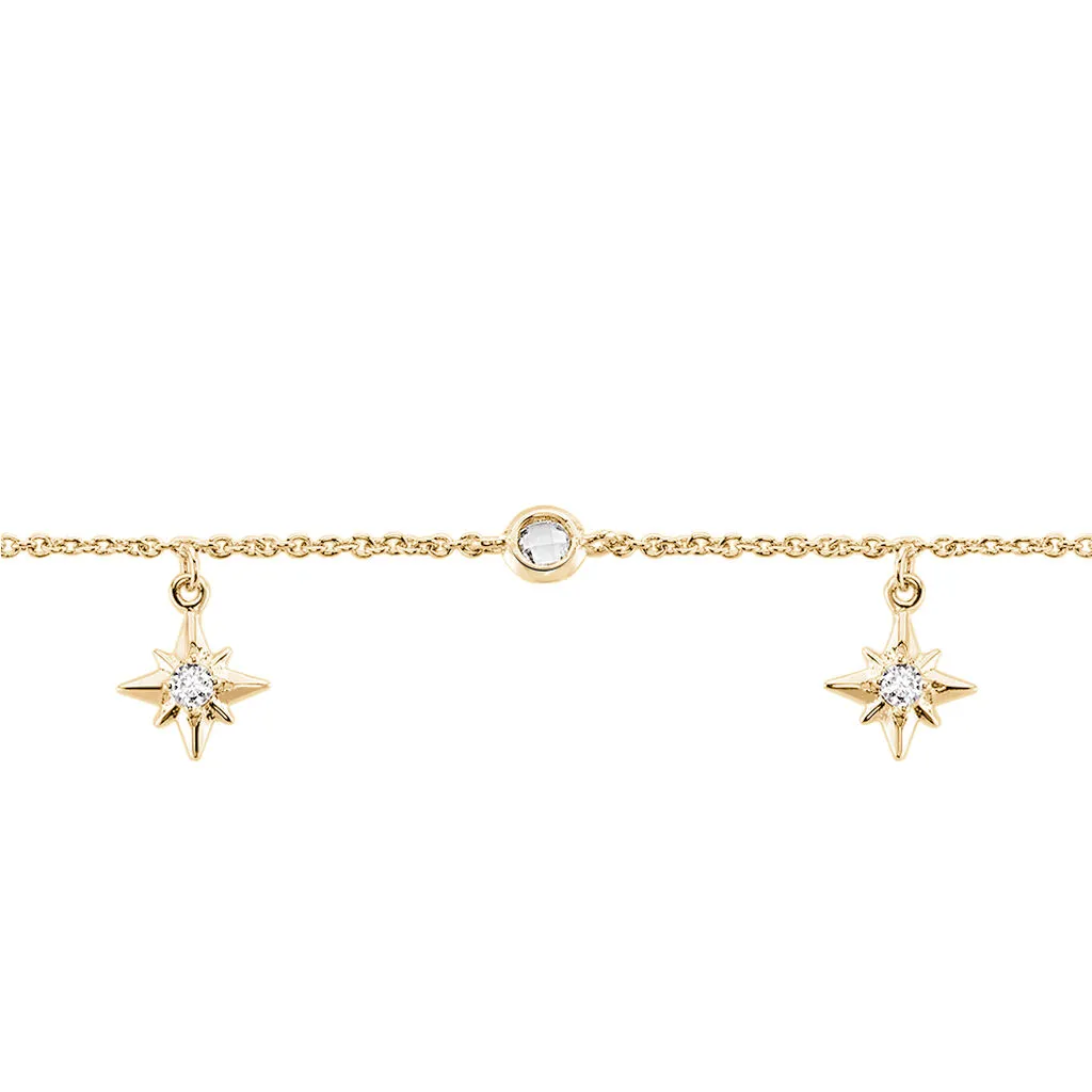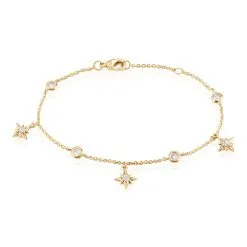 Chaine De Cheville Plaqué Or Jaune Pampilles Etoiles Et Oxydes De Zirconium Clos 25cm