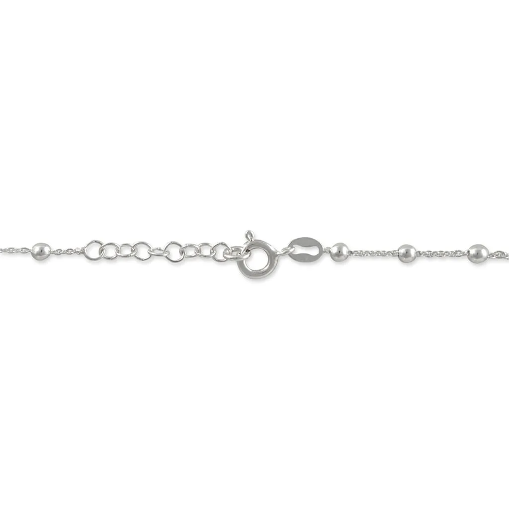 Chaine De Cheville Argent Blanc 925/1000 Pampilles Boules Et Coeurs Maille Boules 24cm