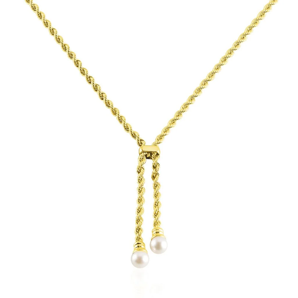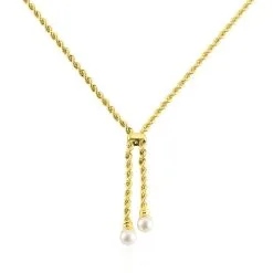 Collier Or Jaune 375/1000 Maille Corde 3mm Perles De Culture 6mm 42cm
