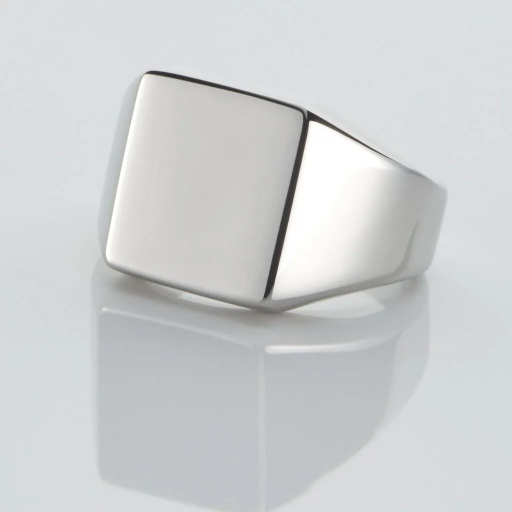 Chevaliere Acier Blanc Plateau Carre Lisse