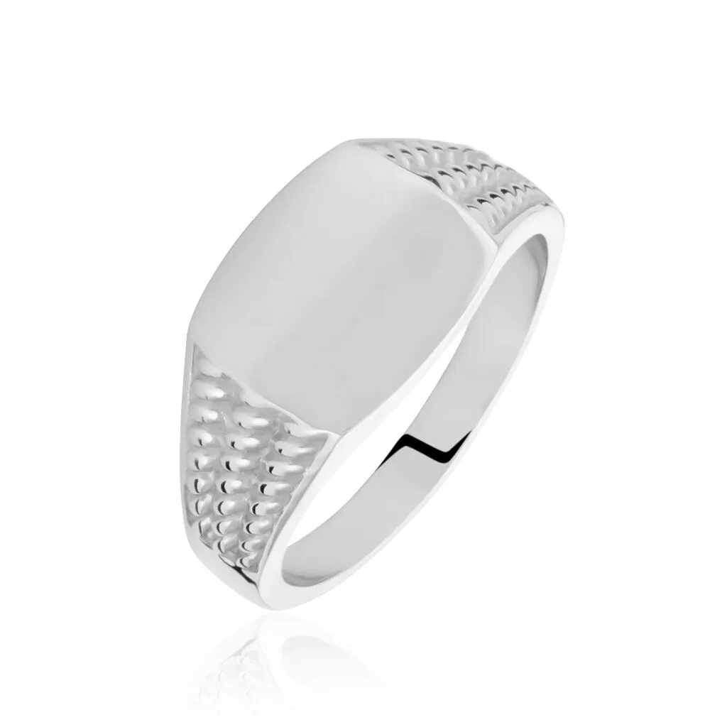 Chevalière Argent Blanc 925/1000 Rectangle Lisse Corps De Bague Travaille