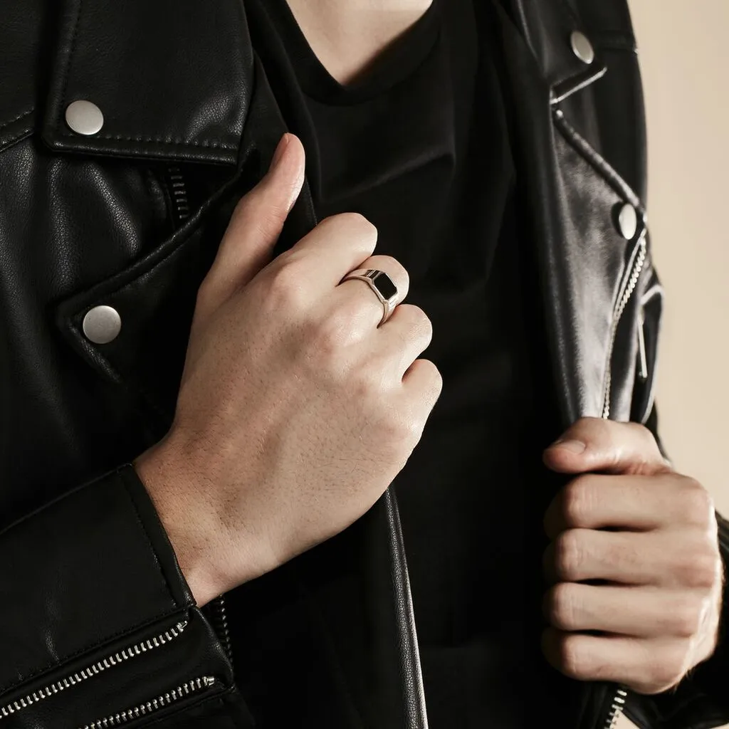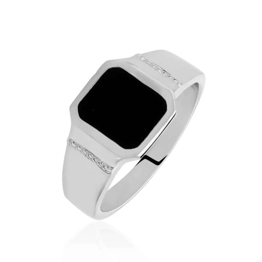 Chevalière Argent Blanc 925/1000 Carre Email Noir