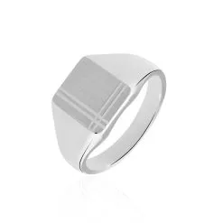Chevaliere Argent Blanc 925/1000 Plateau Carre Cisele Encadre Pm