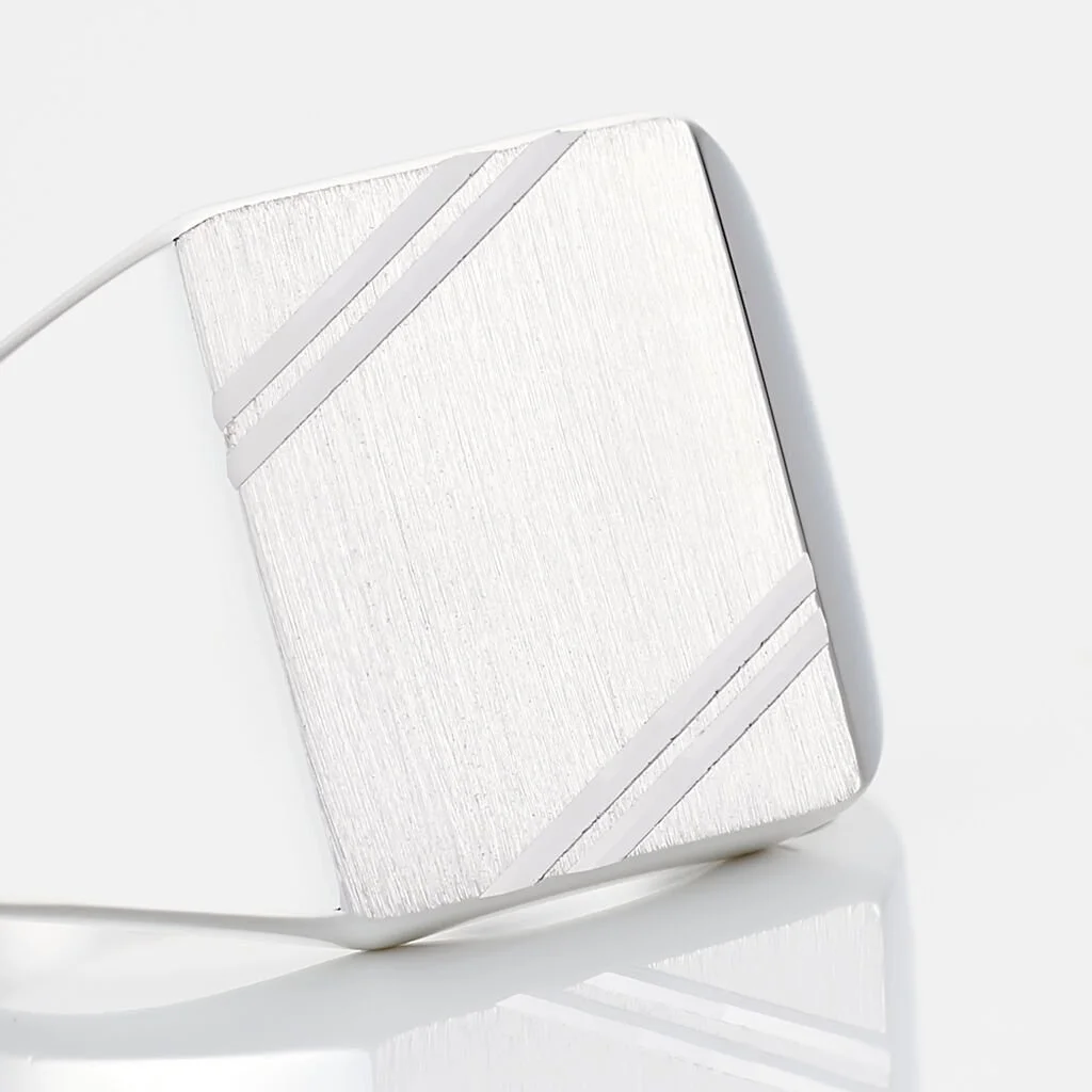 Chevaliere Argent Blanc 925/1000 Plateau Carre Cisele Gm