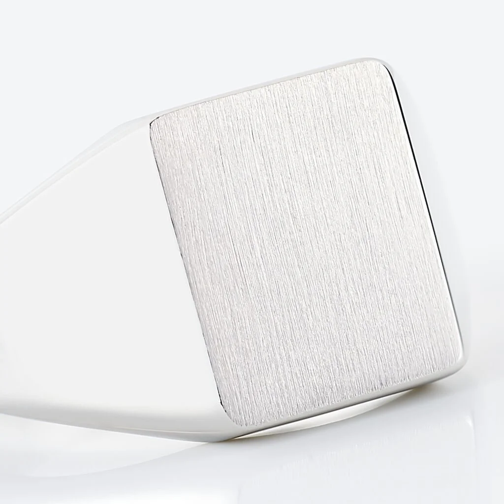 Chevaliere Argent Blanc 925/1000 Plateau Carre Gm