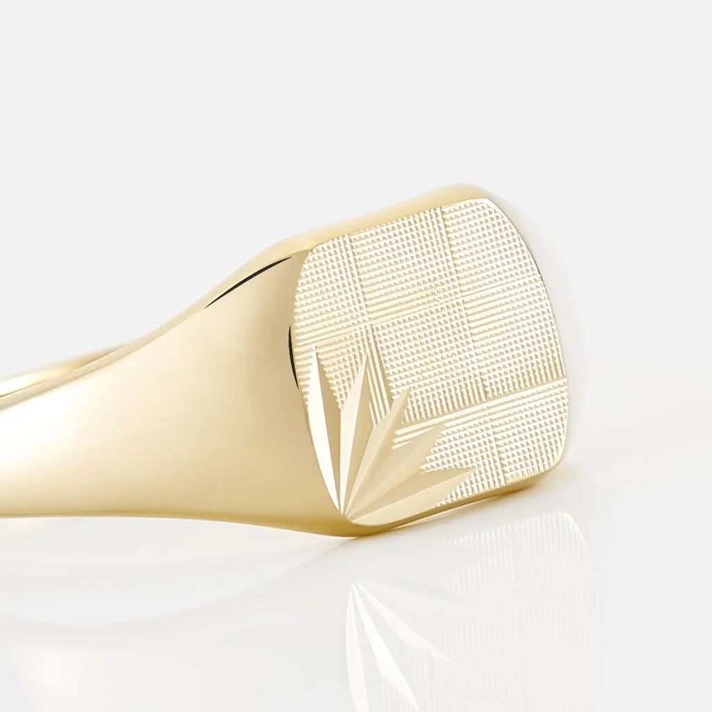 Chevaliere Plaque Or Carree Damier Soleil