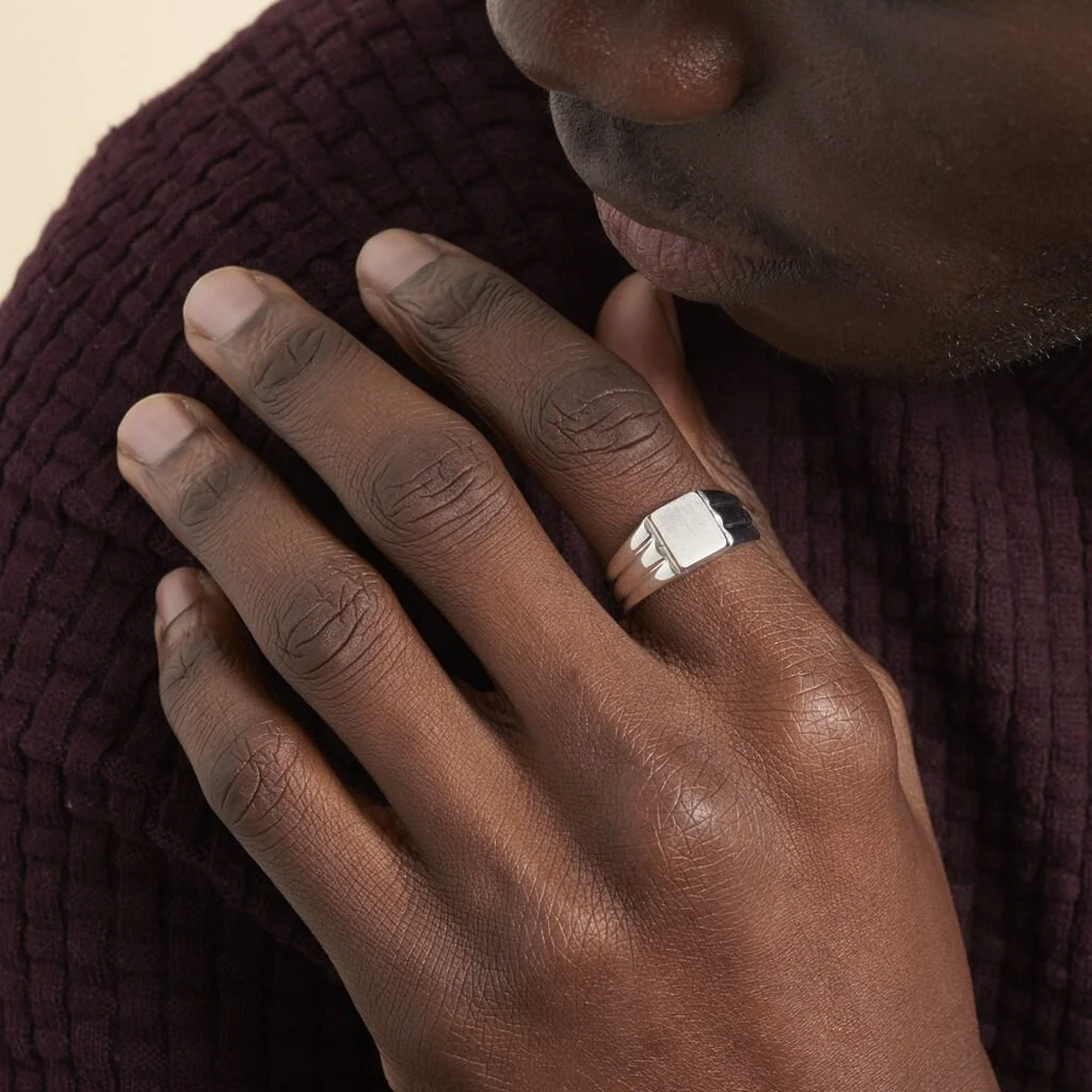 Chevaliere Argent Blanc 925/1000 Plateau Carre Corps Travaille Pm