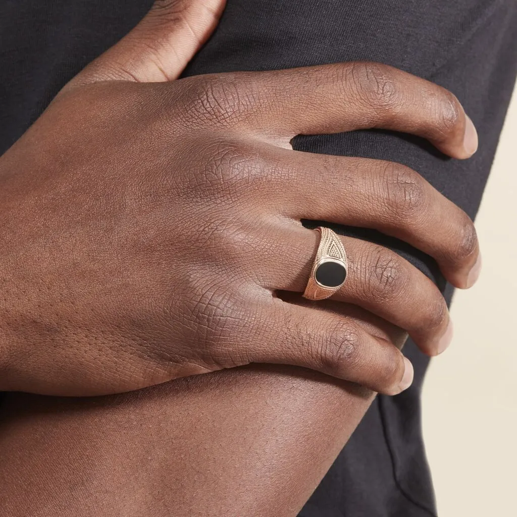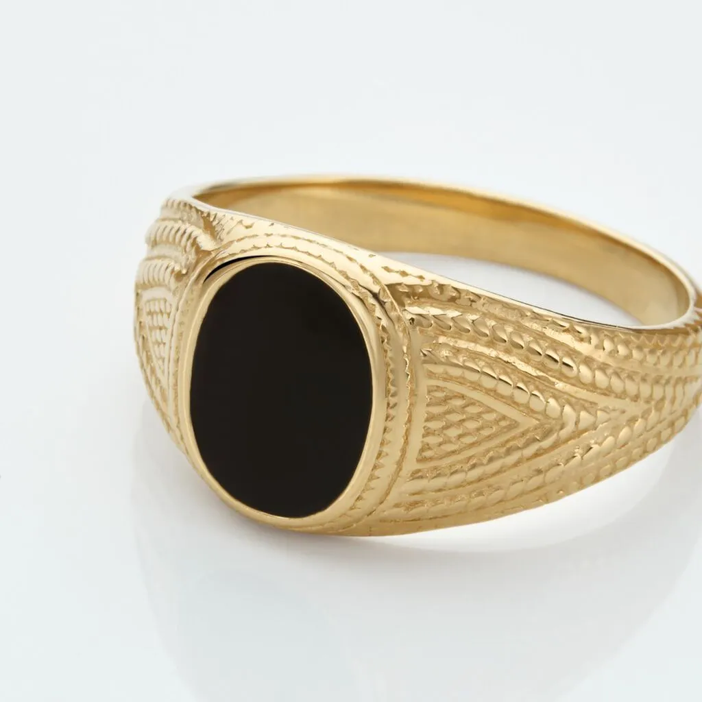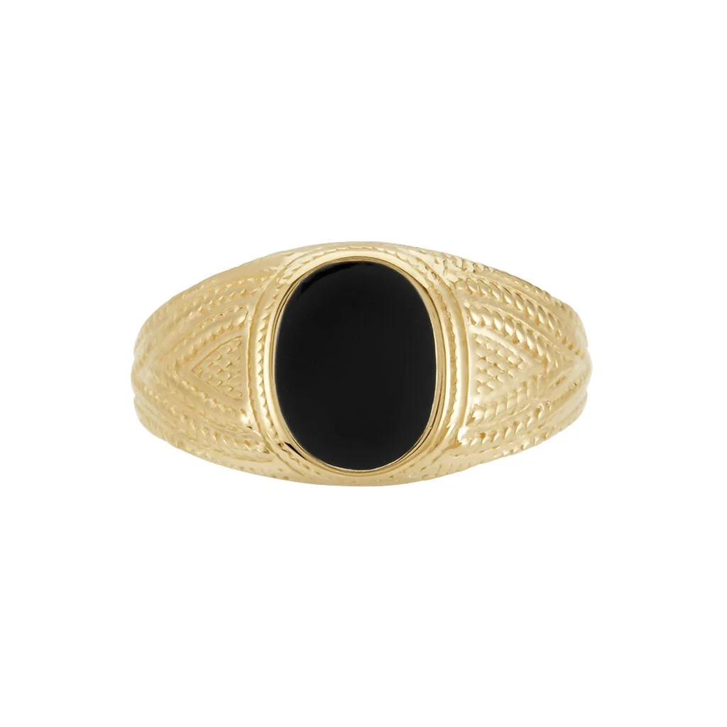 Chevalière Plaqué Or Jaune Carson Email Noir