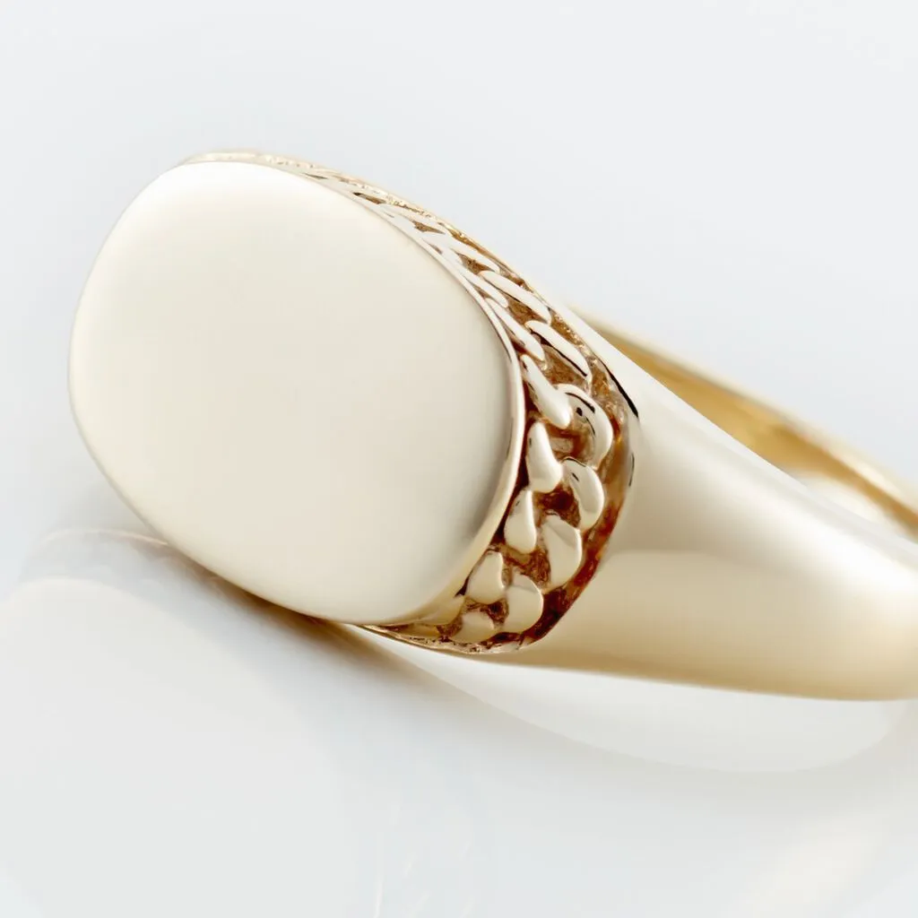 Chevalière Plaqué Or Jaune Rectangle Motif Maille