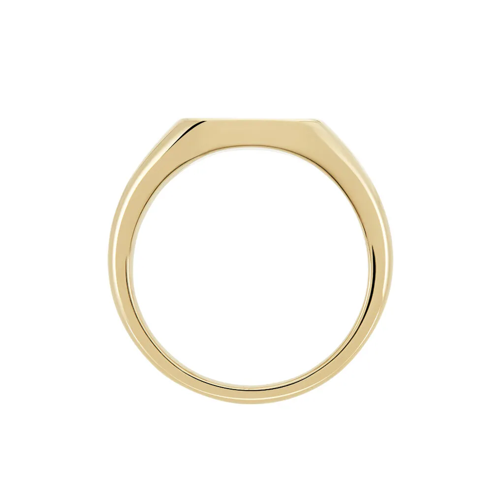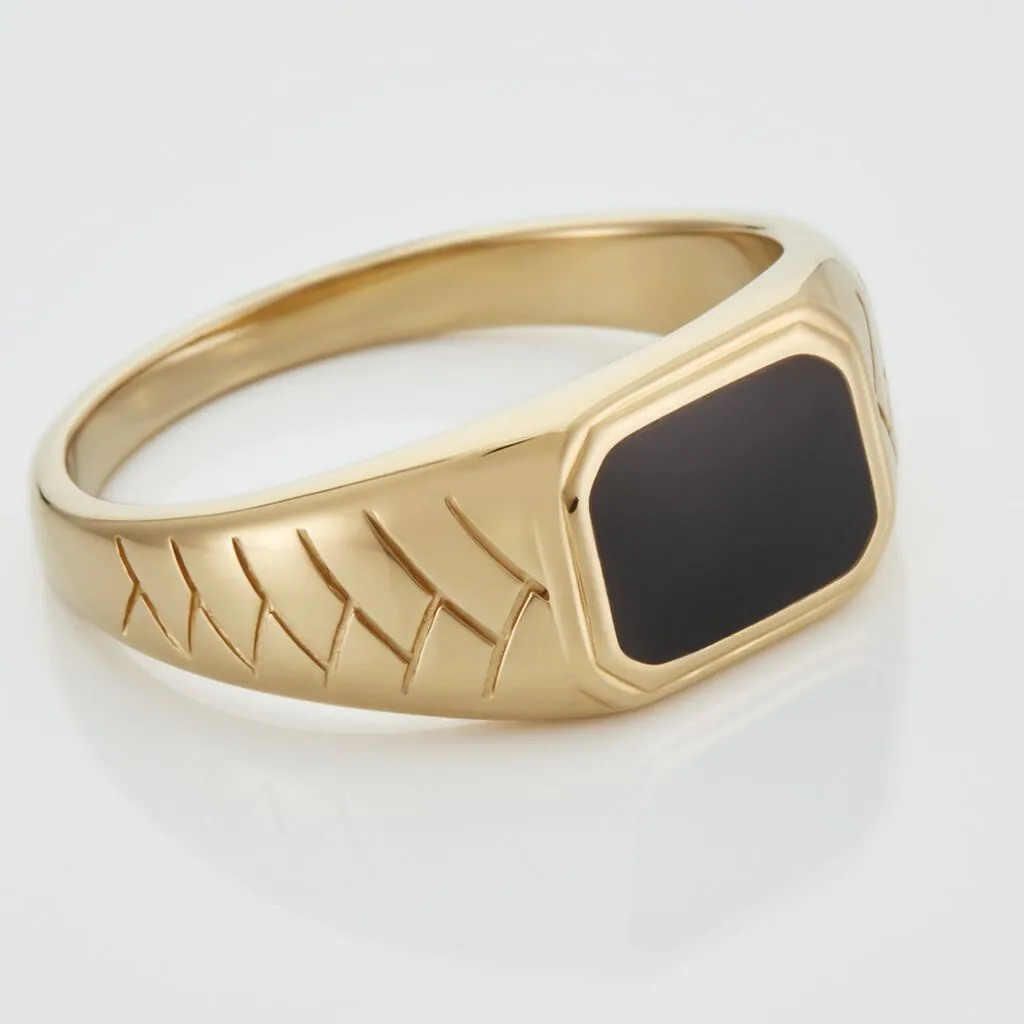 Chevalière Plaqué Or Jaune Carré Email Noir Corps De Bague Chevrons