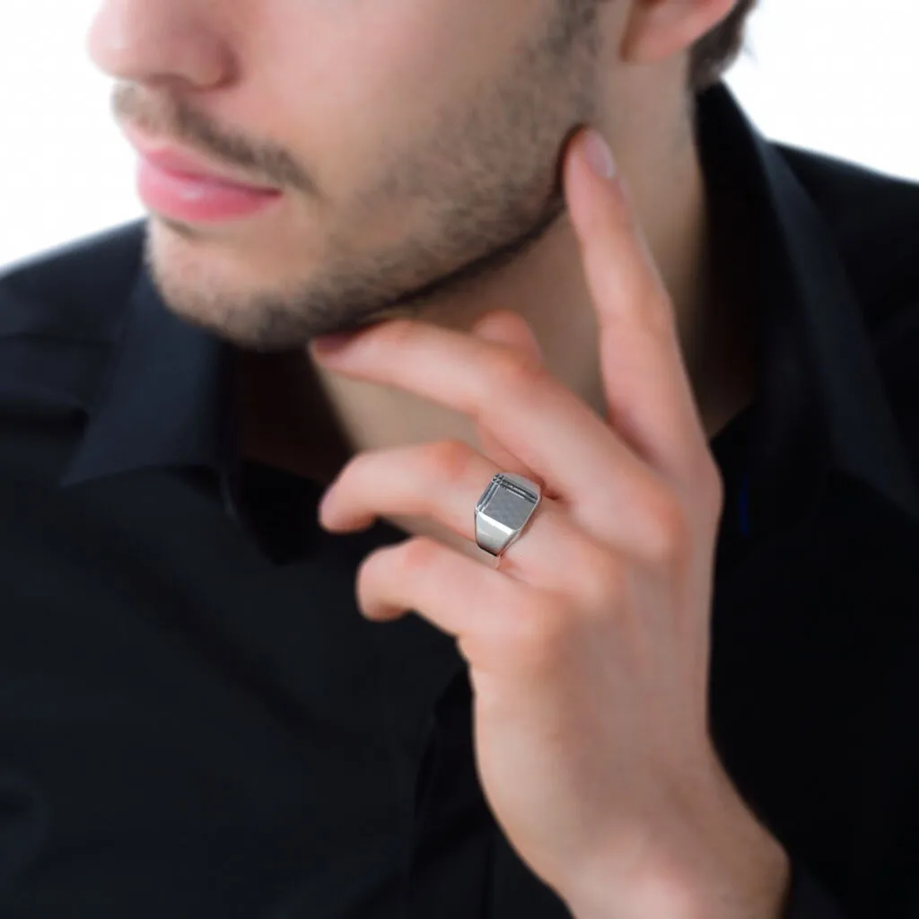 Chevaliere Argent 925/1000 Plateau Carre Ciselee