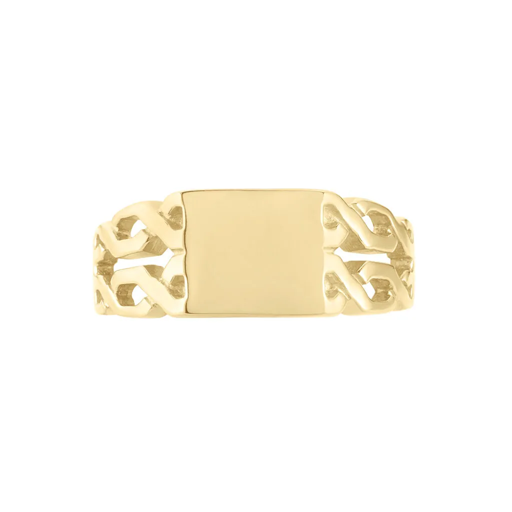 Chevalière Plaqué Or Jaune Plateau Rectangle Corps De Bague Maillons