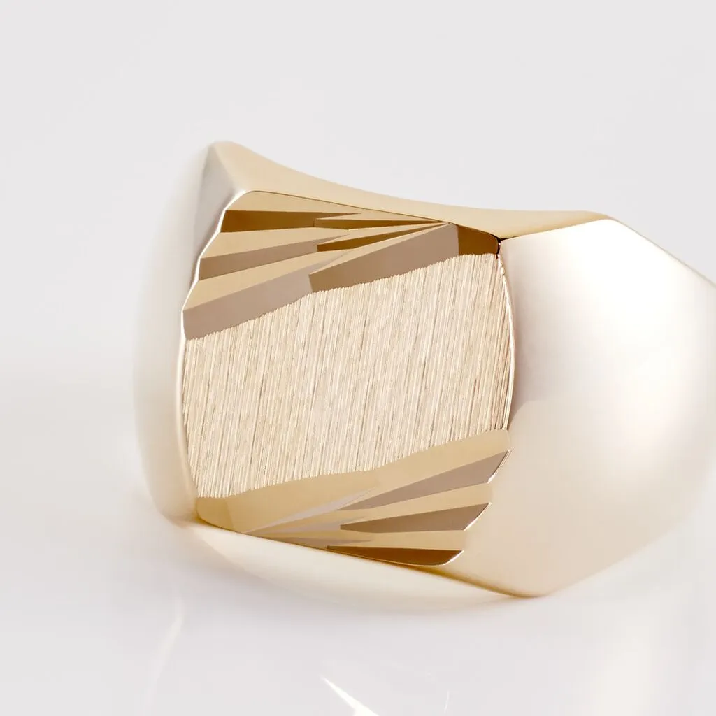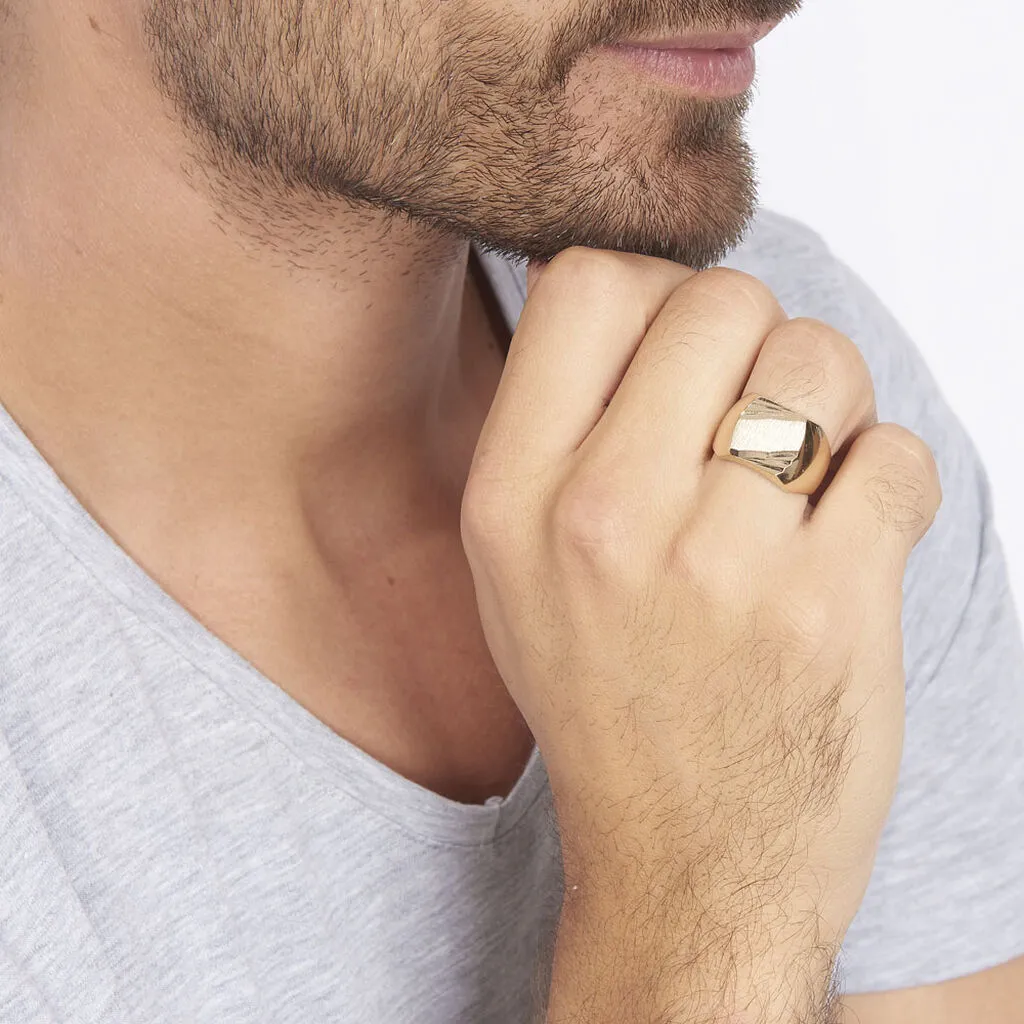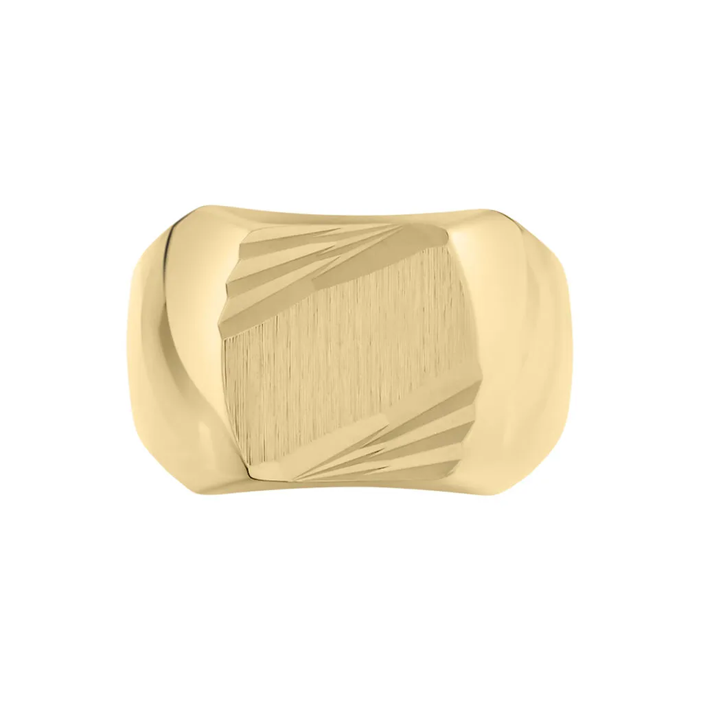 Chevaliere Plaqué Or Jaune Plateau Carre Strie