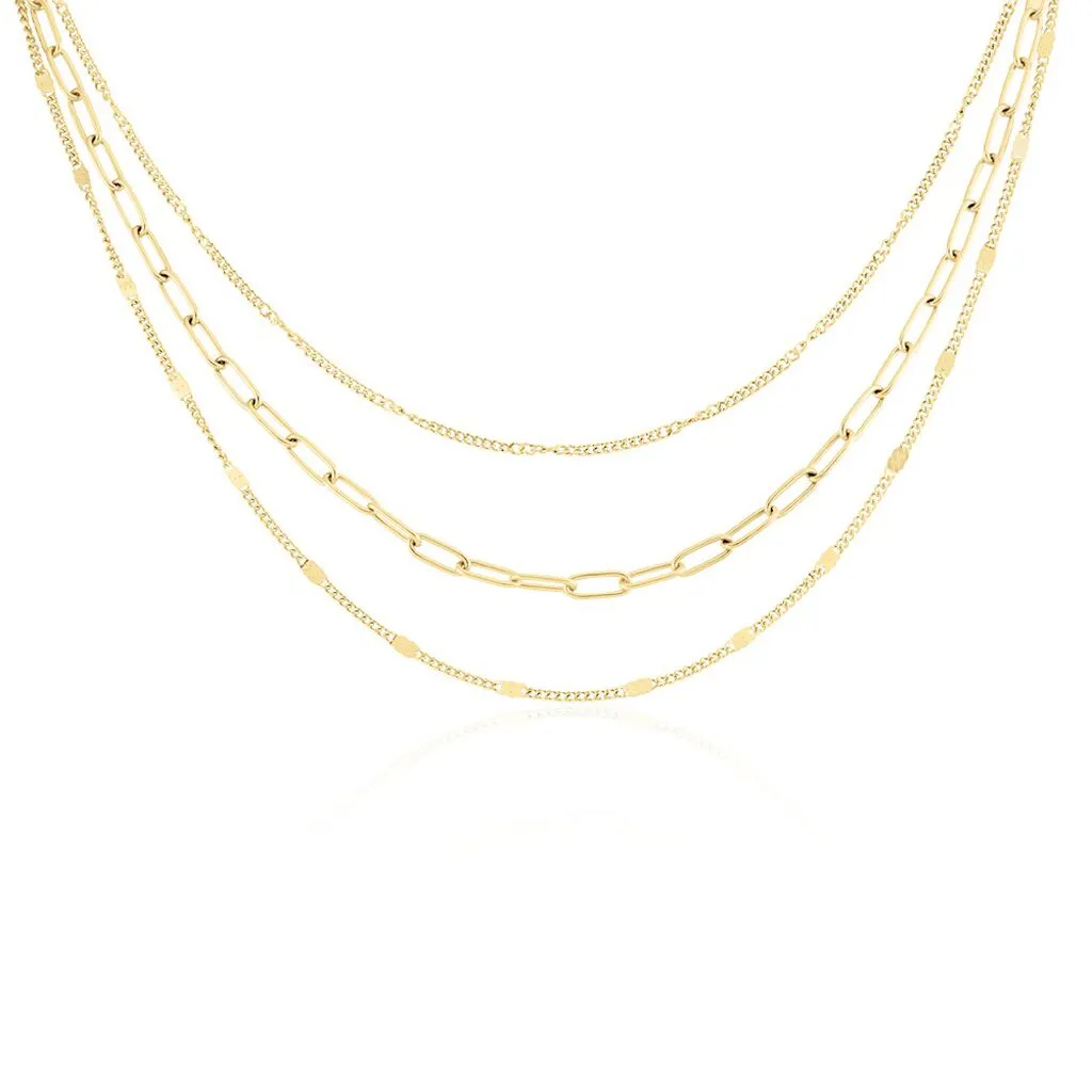 Collier Acier Doré Triple Chaines Fantaisies 41cm