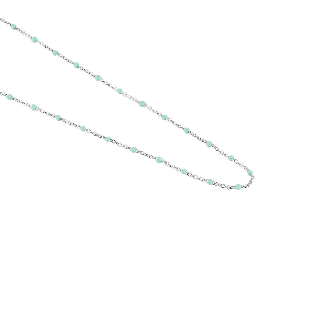 Collier Argent 925/1000 Email Vert D’eau 44cm