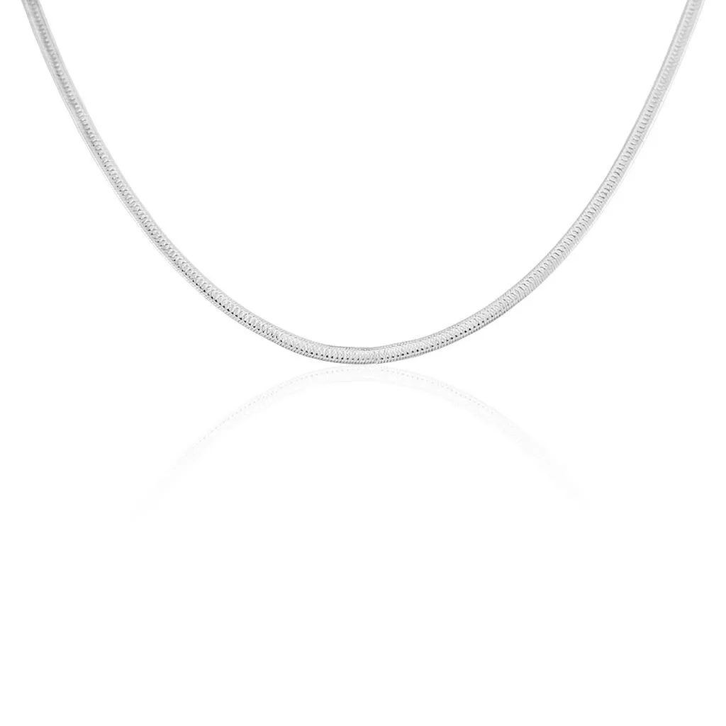 Collier Argent Blanc 925/1000 Maille Miroir Effet Diamanté Largeur 3mm 42cm