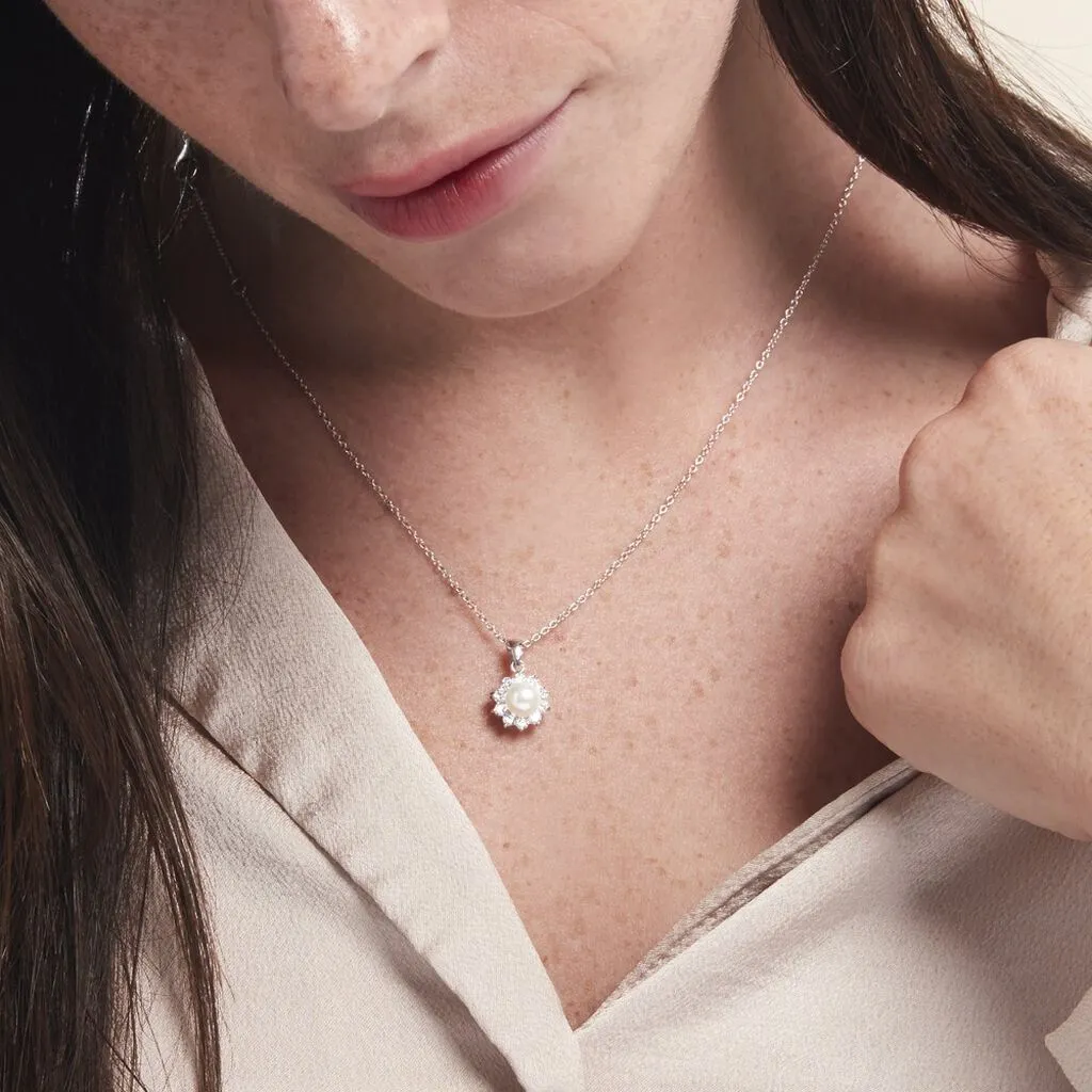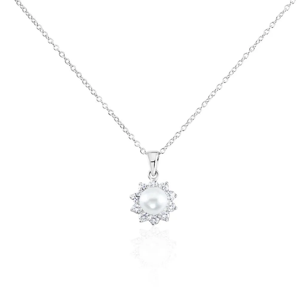 Collier Argent Blanc Cheri Perle De Culture Oxydes De Zirconium