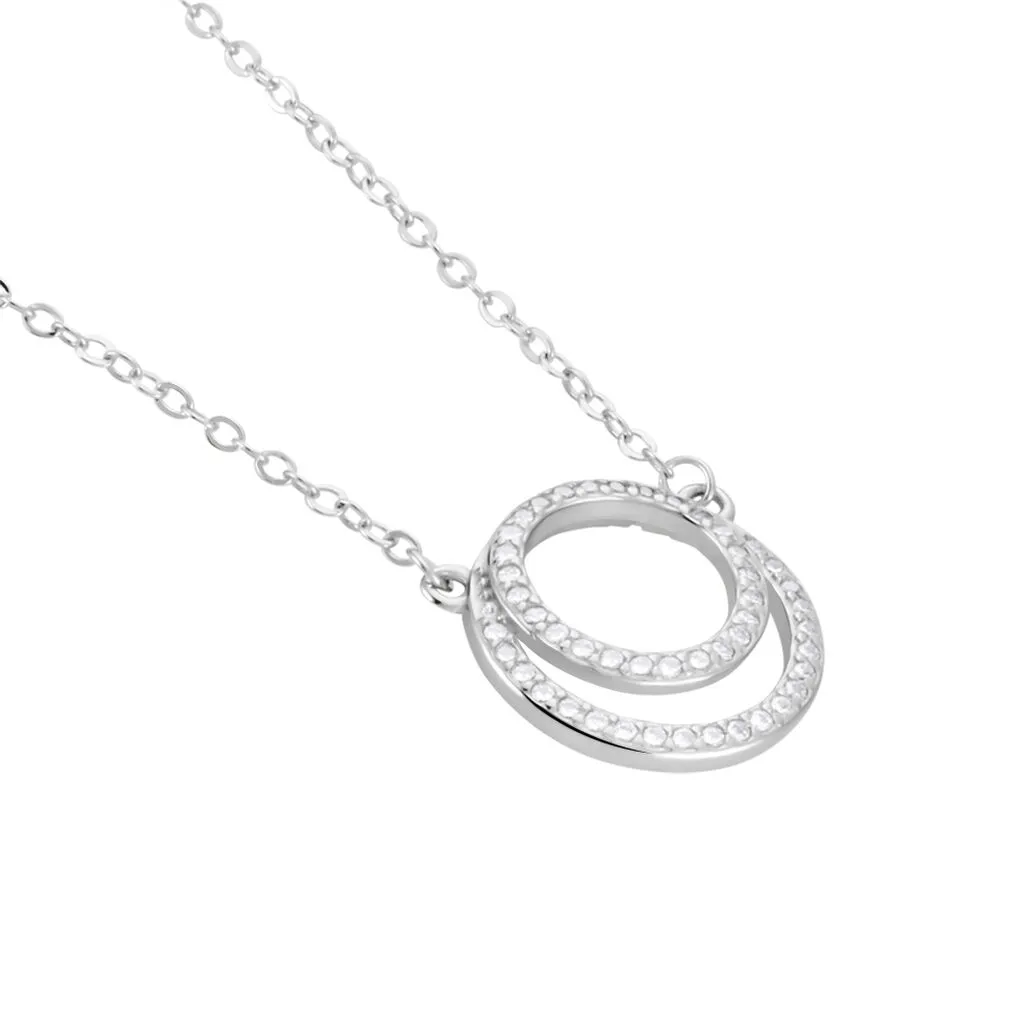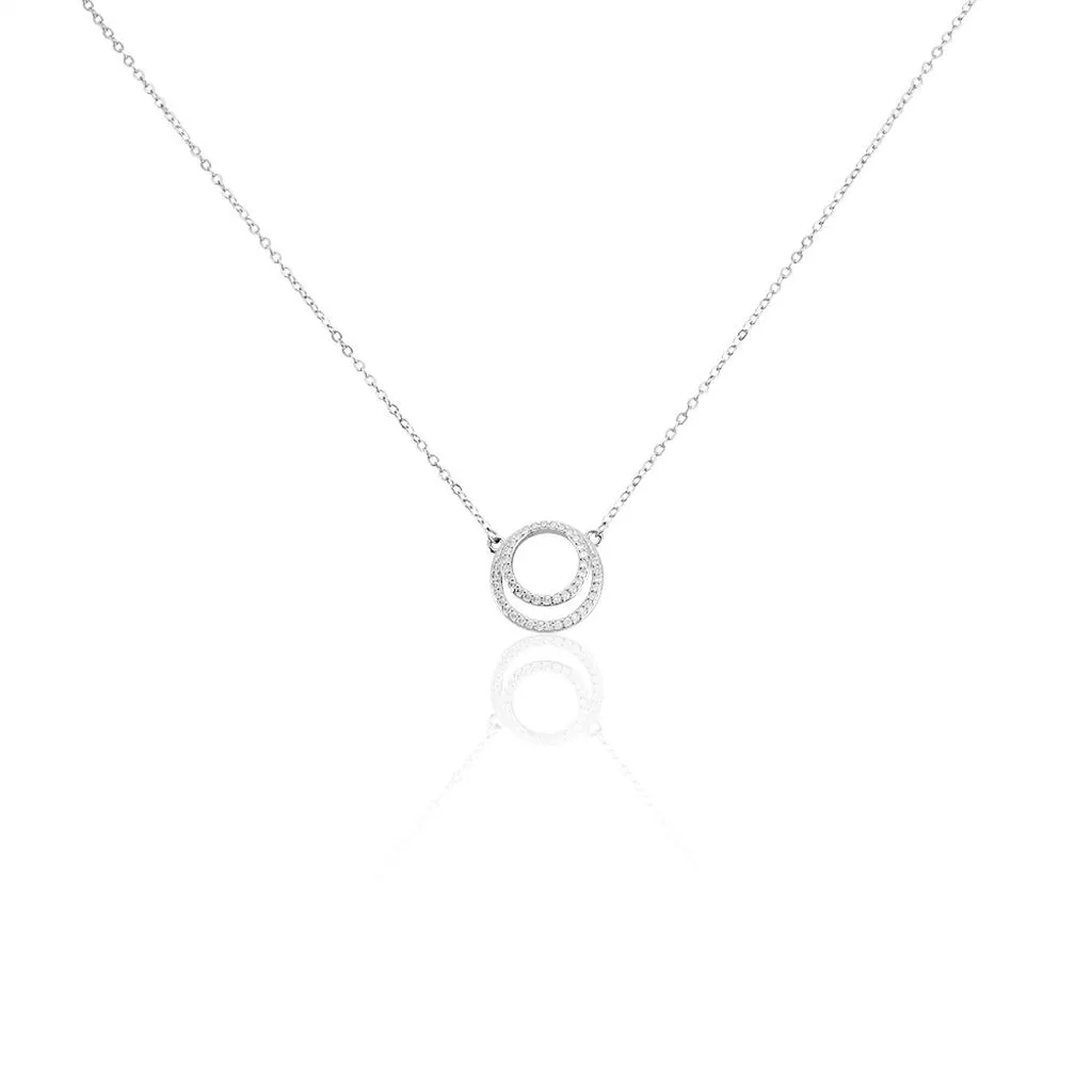Collier Argent Blanc 925/1000 Double Cercle Oxydes De Zirconium Sertis Pavage Maille Jaseron 42cm
