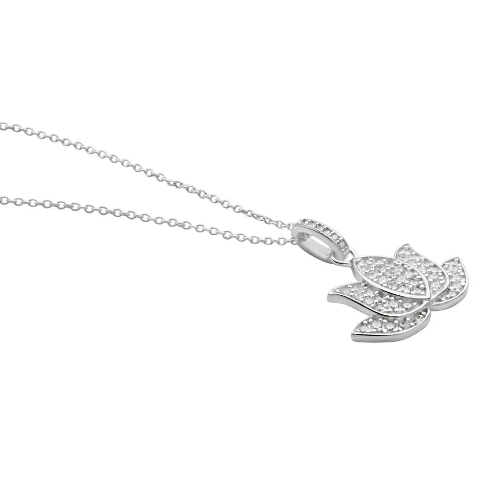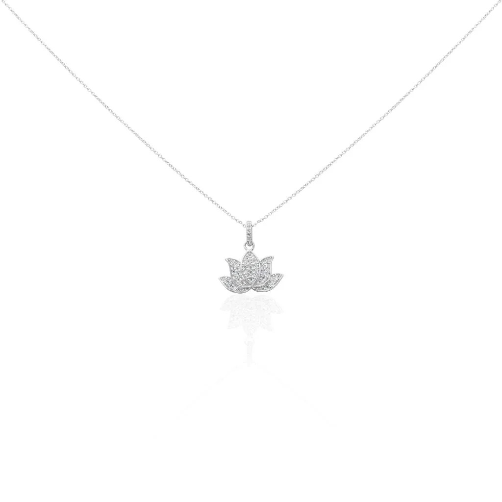 Collier Argent Blanc 925/1000 Fleur De Lotus Pavage Oxydes De Zirconium 45cm