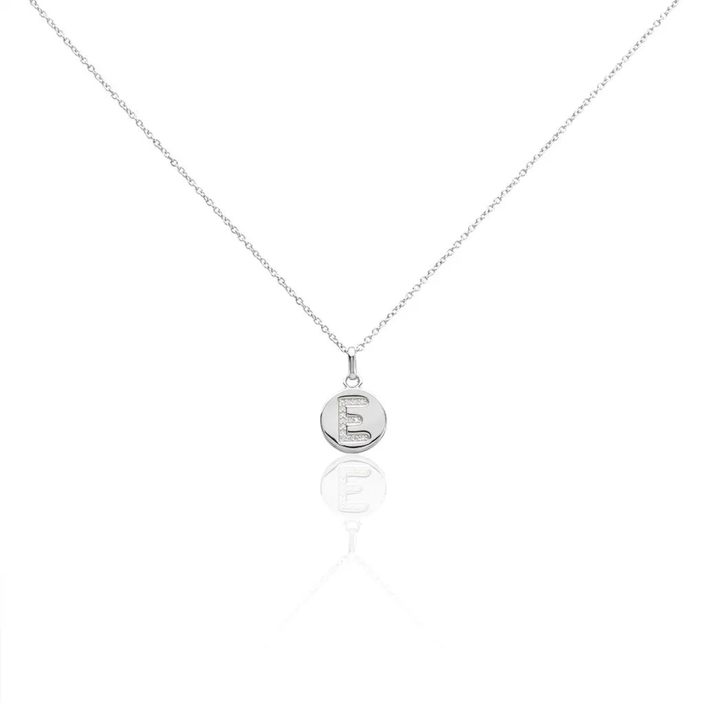 Collier Argent Blanc 925/1000 Pendentif Lettre E Pavage Oxydes De Zirconium Maille Forcat 45cm