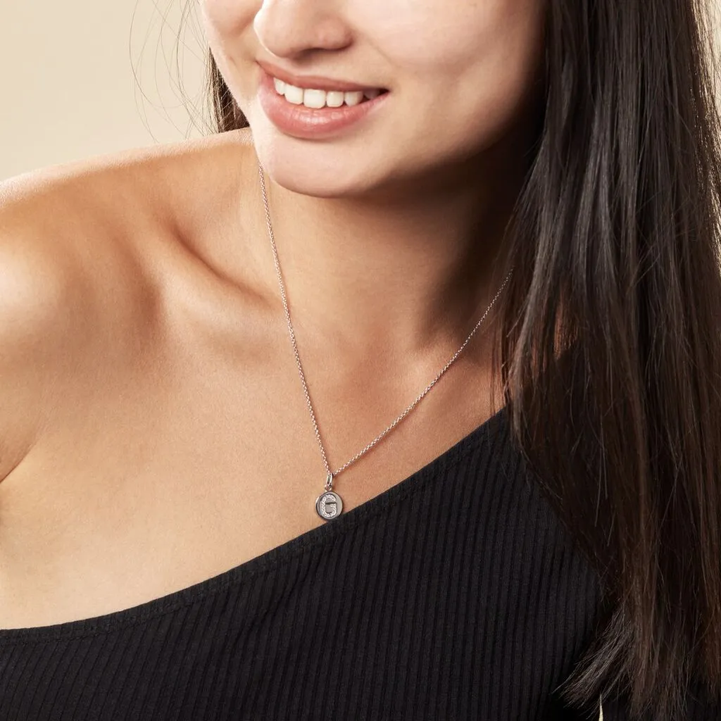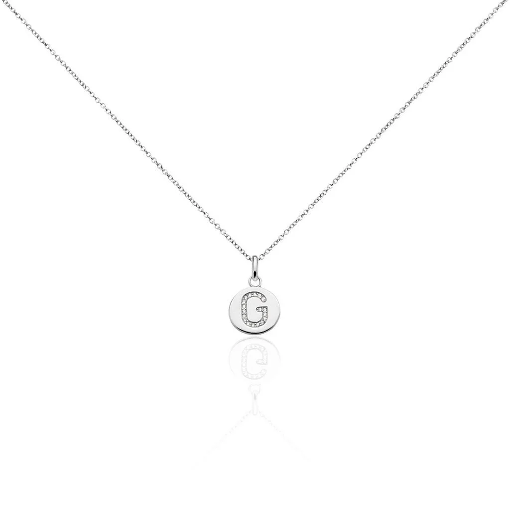 Collier Argent Blanc 925/1000 Pendentif Lettre G Pavage Oxydes De Zirconium Maille Forcat 45cm