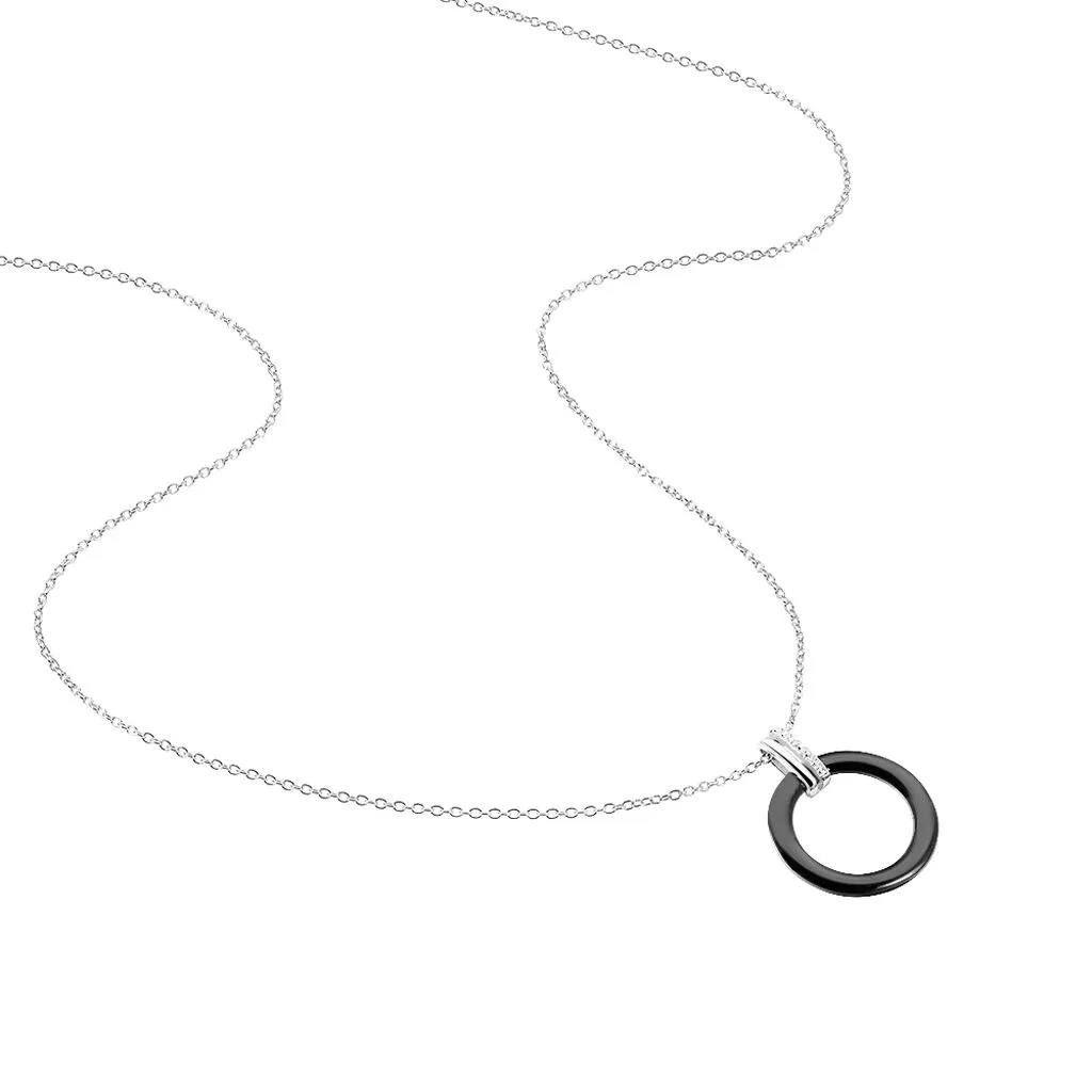Collier Argent Blanc 925/1000 Cercle Ceramique Noire Et Lien Demi Pave Oxydes De Zirconium 45cm