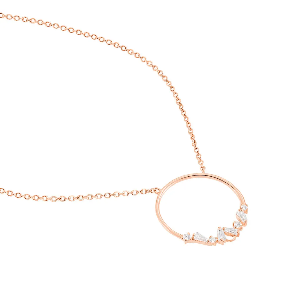 Collier Argent Rose 925/1000 Forme Cercle Bordure Navettes Cristaux Sertis Griffes Oxydes De Zirconium 50cm