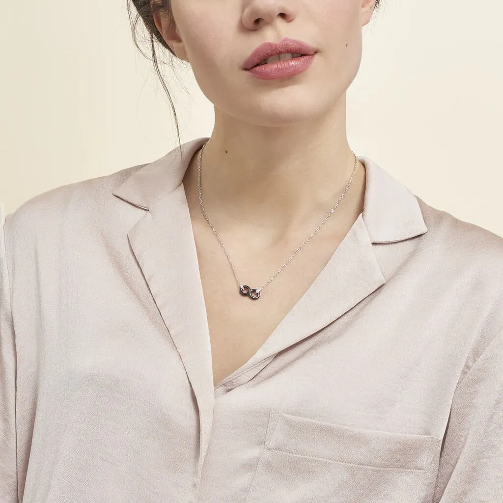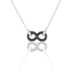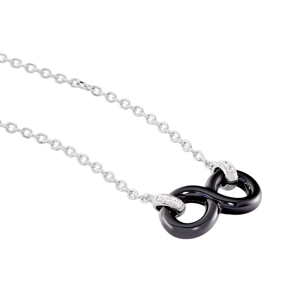Collier Argent Blanc 925/1000 Motif Infini Ceramique Noire Et Oxydes De Zirconium 45cm