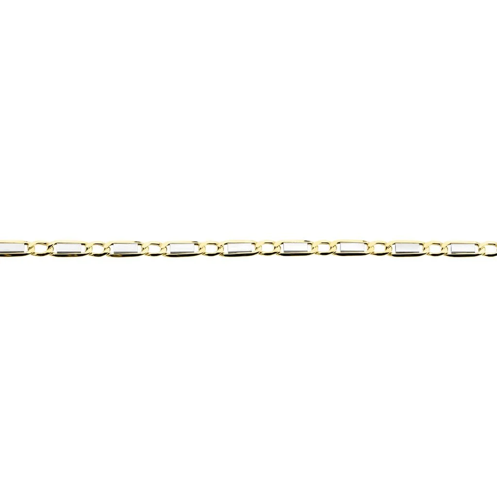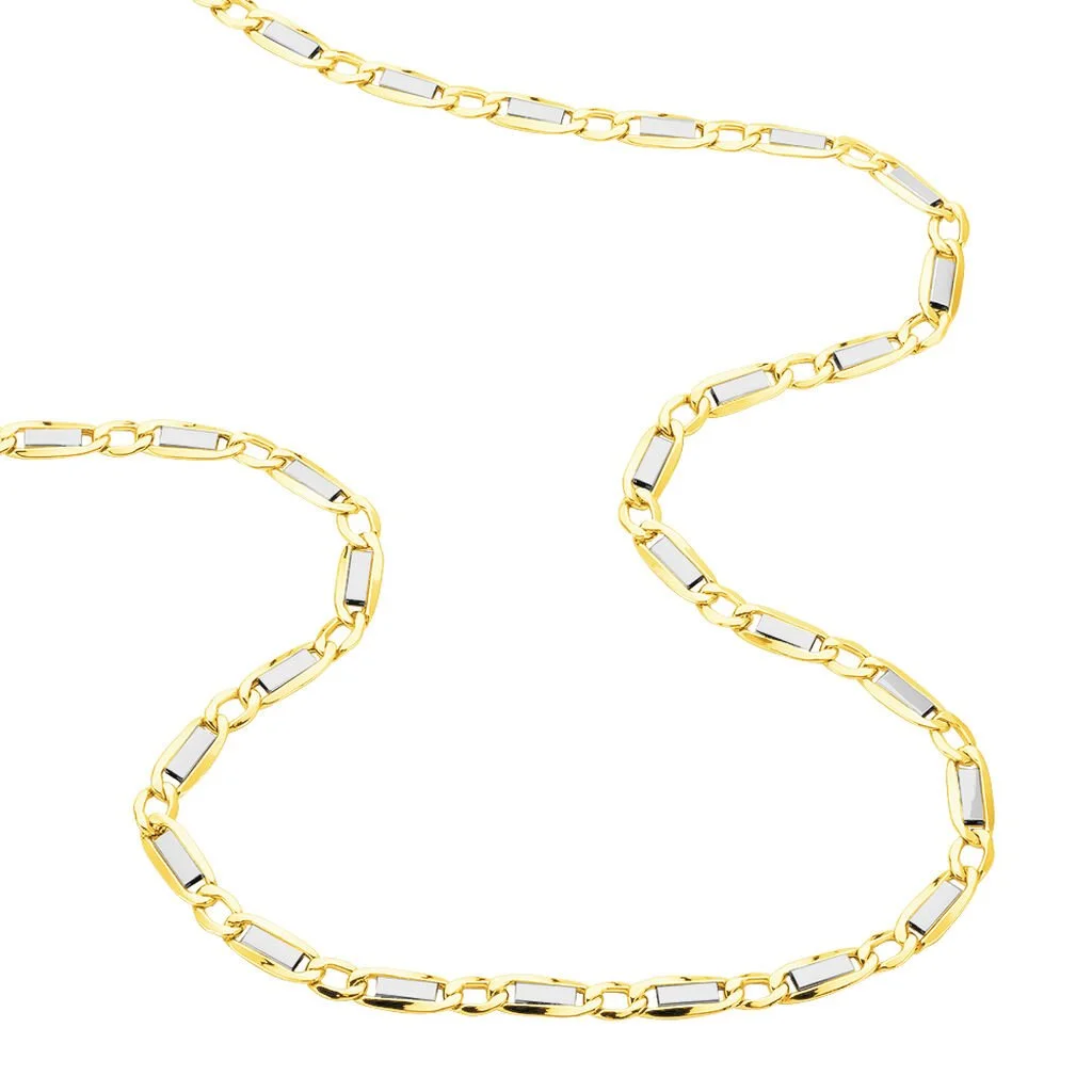 Collier Or Bicolore 375/1000 Maille Plaquette Alternée 1/1 4.5mm 55cm