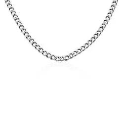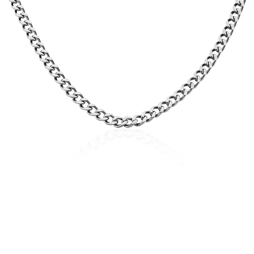 Collier Acier Blanc Maille Gourmette Plate 55cm
