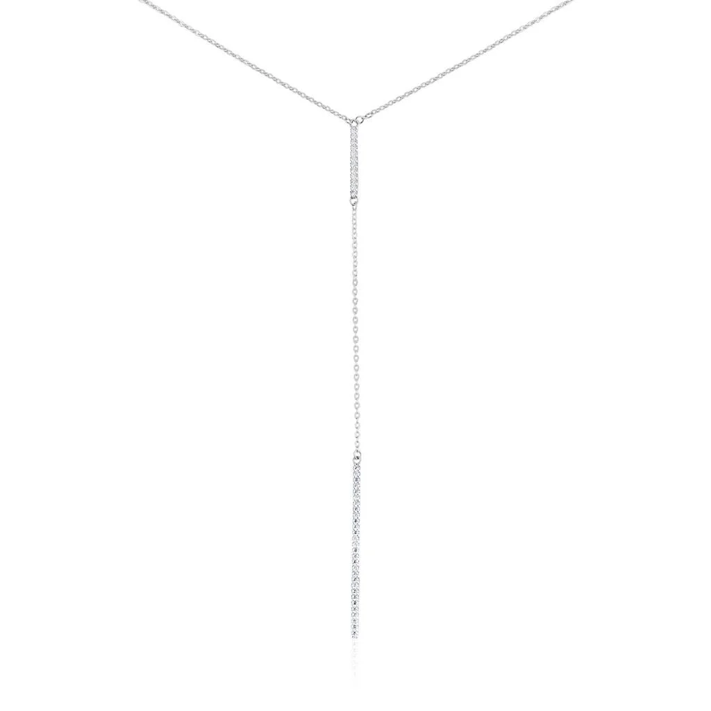 Collier De Dos Argent Blanc 925/1000 Barrettes Micro Setting Oxydes De Zirconium Maille Forcat Longueur Mi Dos 66+12cm