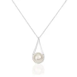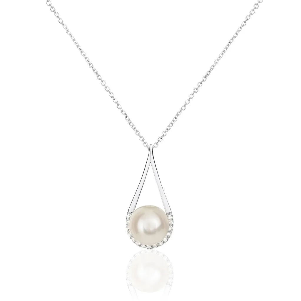 Collier Elisabeth Or Blanc Diamant Et Perle De Culture