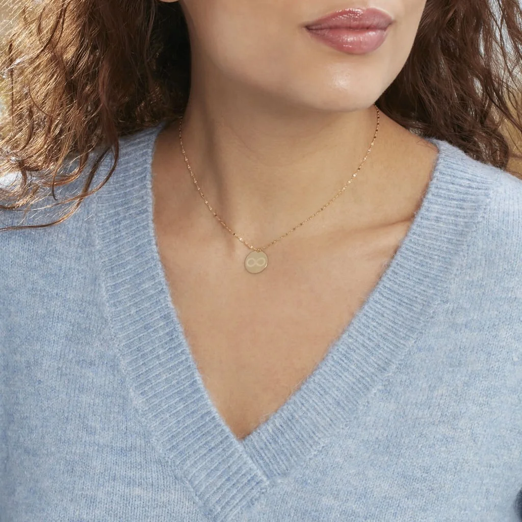 Collier Or Jaune 375/1000 Pastille Symbole Infini 38cm
