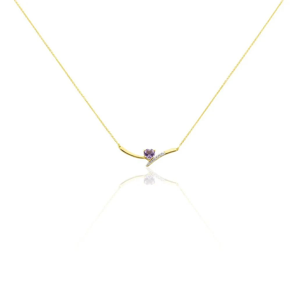 Collier Or Jaune 375/1000 Améthyste Forme Cœur Et Oxydes De Zirconium Lovin 43cm