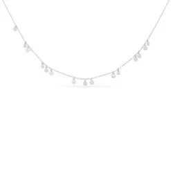 Collier Argent Blanc 925/1000 Pastilles Micro Setting Oxydes De Zirconium 45cm