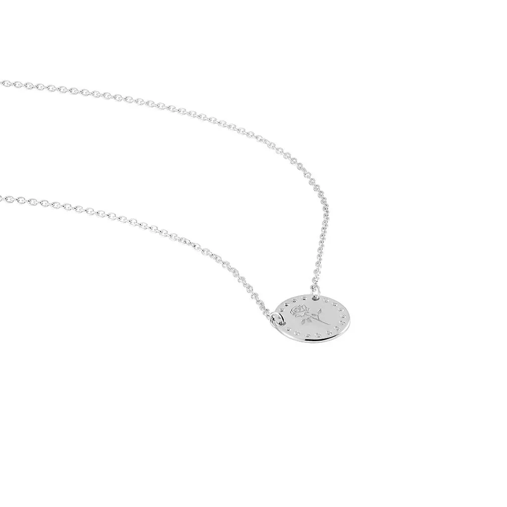 Collier Argent 925/1000 Pastille Rose Maille Forçat Entourage Sertis Oxydes De Zirconium 45cm