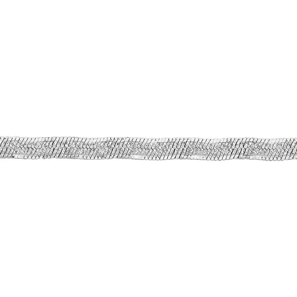 Collier Argent Blanc 925/1000 Maille Heringbone Ondulee Diamantee Largeur 3.3mm 42cm