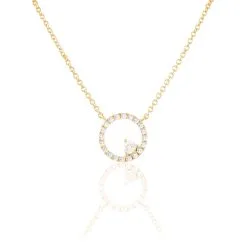Collier Plaque Or Oxyde Central Cercle Pave Oxydes De Zirconium 44cm