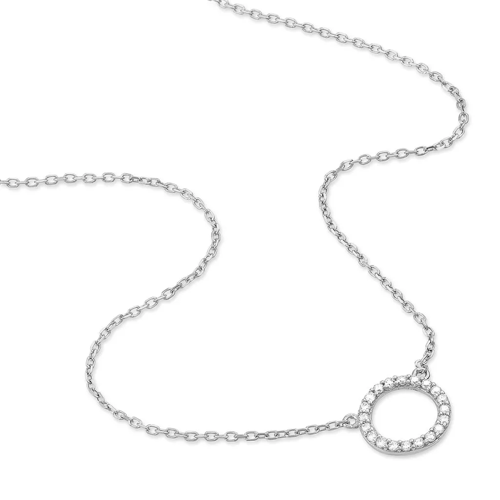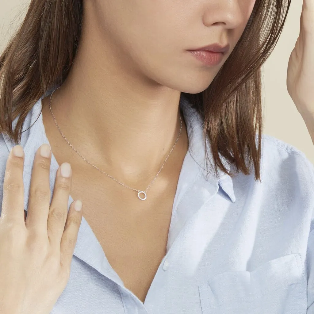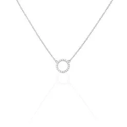 Collier Or Blanc 375/1000 Cercle Creux Pave Oxyde De Zirconium 42cm