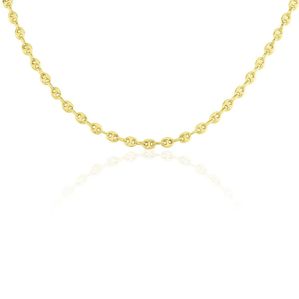 Collier Or Jaune 375/1000 Maille Grain De Café Largeur 3.8mm 50cm
