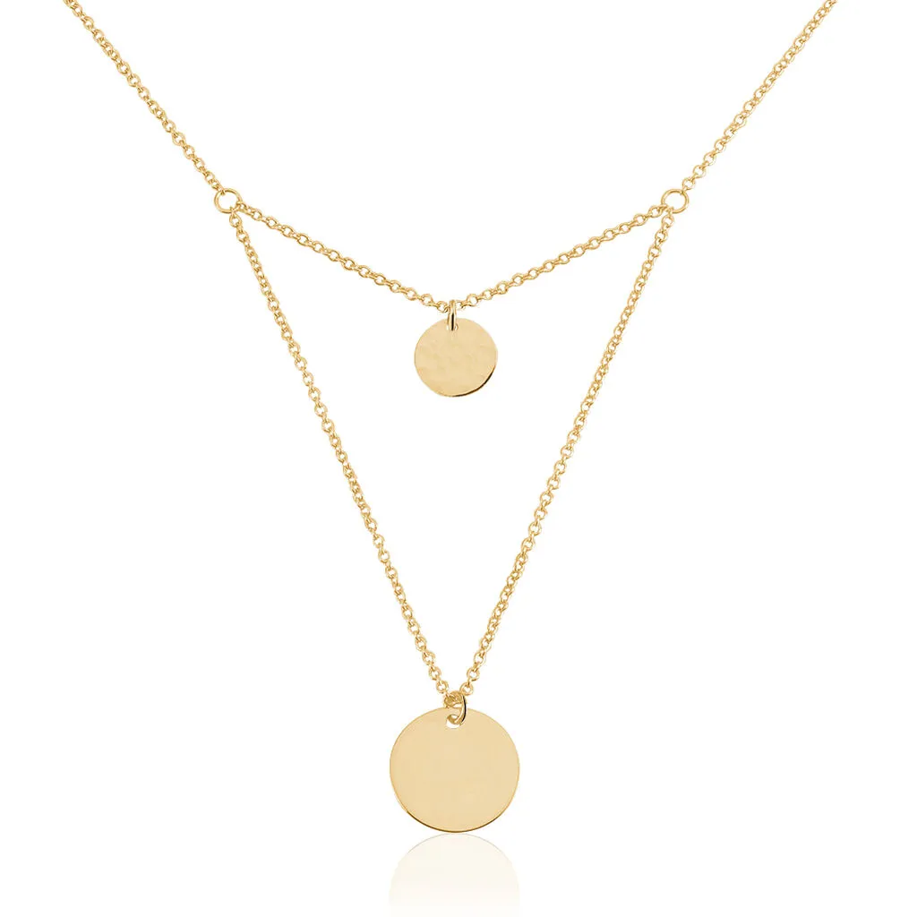 Collier Plaque Or Jaune Double Chaine Pastilles Lisses Et Martelees 48cm